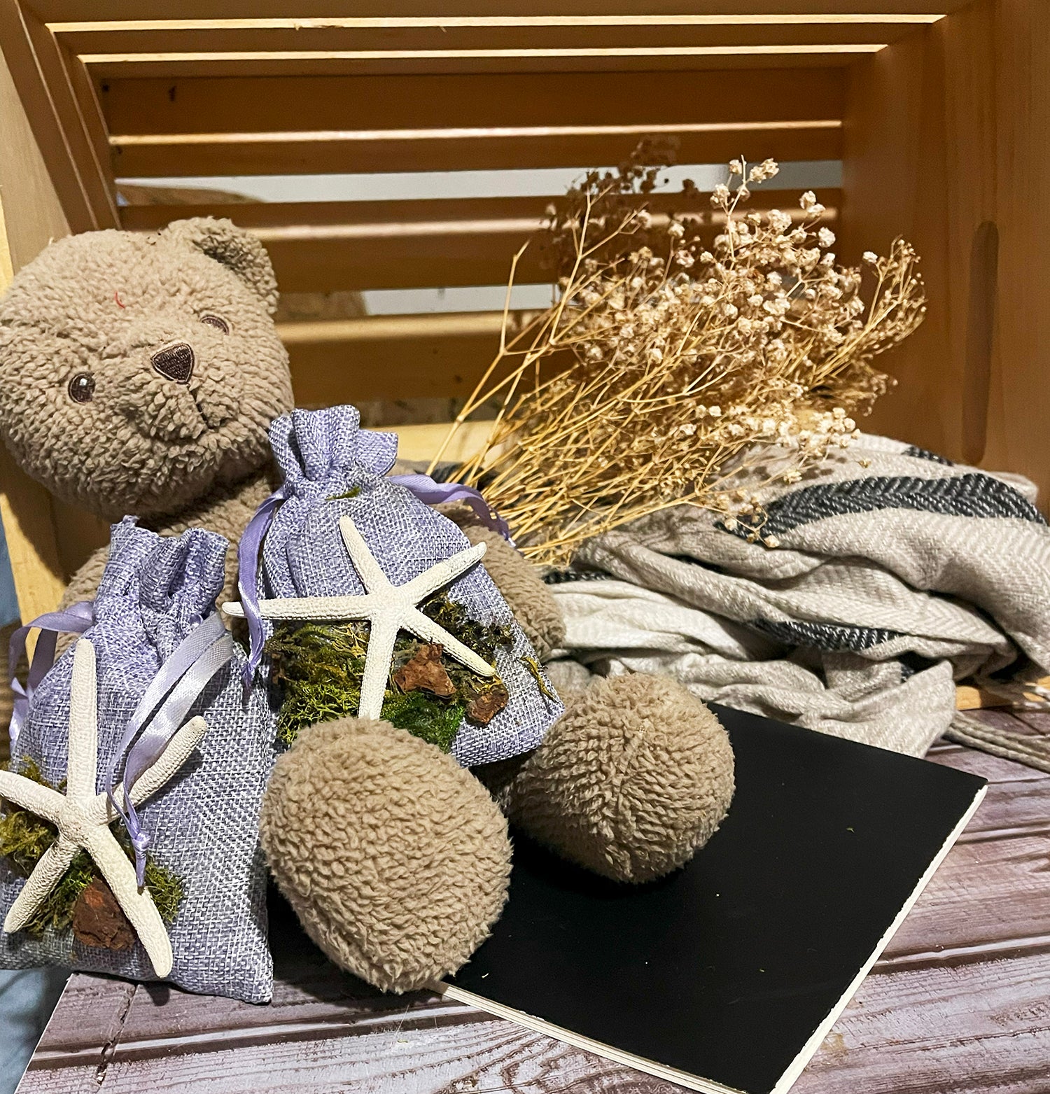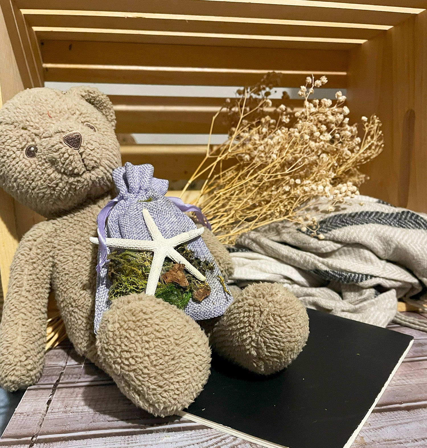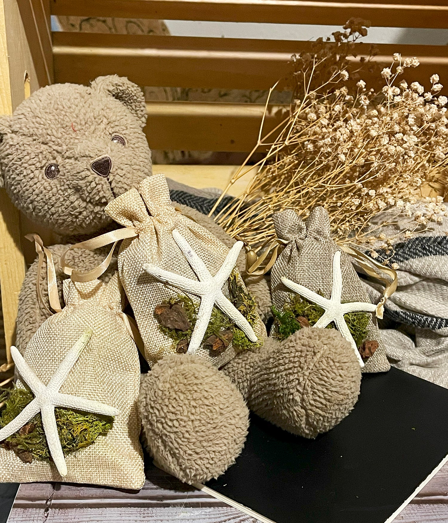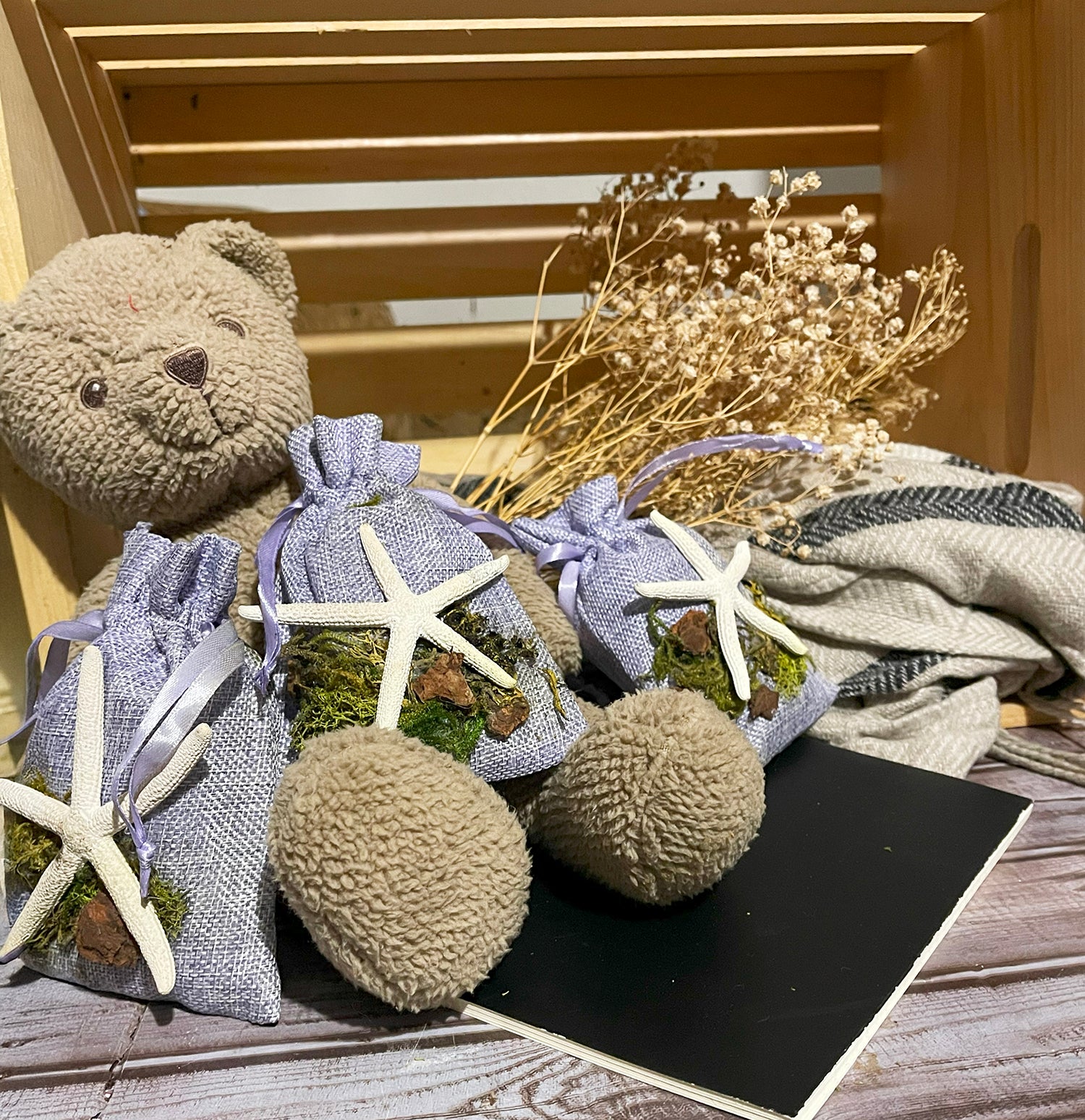 Each bag is hand-decorated with starfish and moss, adding a touch of elegance to any room. Available in a variety of colors including sand, sage, and lilac, these versatile deodorizers blend seamlessly with any decor. Perfect for small spaces like refrigerators, cars, closets, and under-sink areas, our Biochar Deodorizer Bags are an all-natural, battery-free alternative to candles and air purifiers. They don't just mask odors - they eliminate them entirely, ensuring a truly fresh and inviting atmosphere.